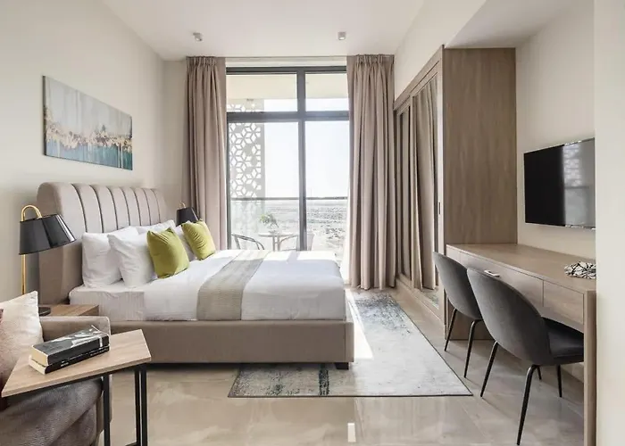 L'immeuble fournit une cuisine complète qui est complétée par un micro-ondes. Il est niché à 25 km de l'aéroport international Al Maktoum. Le studio dispose d'une piscine.